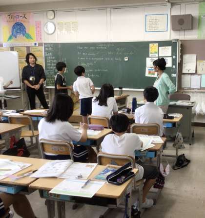9月10日 学習の様子「したことを伝え合おう」 公開日 2024/09/10 更新日 2024/09/10 校長室から 6年生が英語の学習で、「How was〜」の言い方を使って、夏休みにしたことを尋ねあっていました。会話を続ける表現も大切、と、練習から学んでいました。