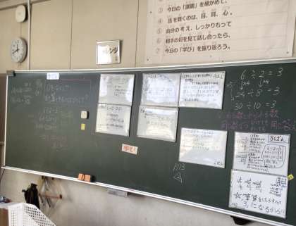 9月19日 学習の様子「理由を考えよう」 公開日 2024/09/19 更新日 2024/09/19 校長室から 4年生が、算数科の学習で「大きな数の割り算」に取り組んでいます。計算を正しく行うことだけでなく、どうしてそのように計算ができるのか、という理由を考え、互いに説明をしあいながら問題に取り組んでいます。