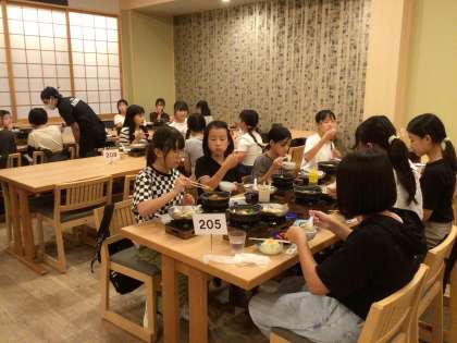 9月20日 修学旅行1日目 8 公開日 2024/09/20 更新日 2024/09/20 校長室から 奈良での活動を終えて、京都の宿泊施設に到着しました。 予定よりも早く到着したので、夕食時間も少し早めました。 おかわりをする子もたくさんいました。