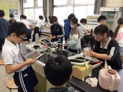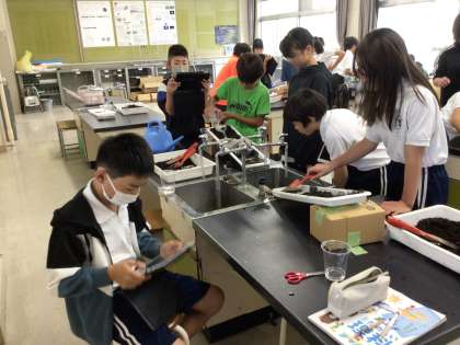 様子の観察だけでなく、学習用タブレットで動画も撮影しながら実験をして結果をまとめていました。