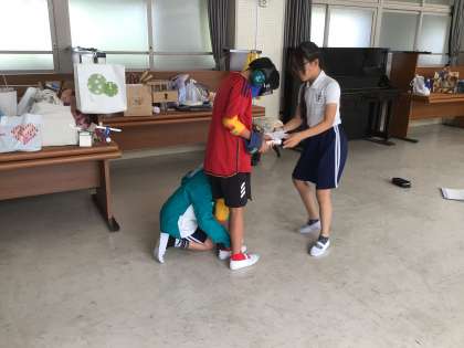 10月22日 高齢者疑似体験 公開日 2024/10/22 更新日 2024/10/22 校長室から 5年生が、総合的な学習で「福祉」について学んでいます。 今日は、装具(ヘッドフォン、ゴーグル、手足の重りなど)をつけて、高齢の方の日常生活動作を擬似的に体験し、加齢による身体的な変化を考えました。 子どもたちは「黄色の字は見えにくい」「階段が大変」等、気づいたことを教えてくれました。