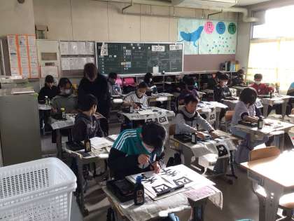 11月27日 書き初めの練習(高学年) 公開日 2024/11/27 更新日 2024/11/27 校長室から 各学年で書き初めの練習を始めました。 書写ボランティアの方々にお越しいただき、学級ごとに指導をしていただいています。