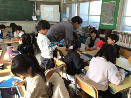 2年生は、次の校外学習に向けてグループで計画を立てる際、道順などをタブレットで確認していました。