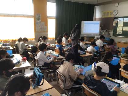 3年生は、外国語活動の時間にタブレットでクイズを作っていました。