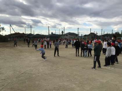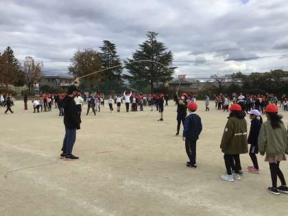 縦割りでは初めて長縄跳びを行ったので、縄に入ることが難しい様子も見られましたが、高学年の子たちに励まされながらがんばっていました。