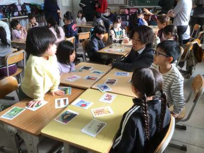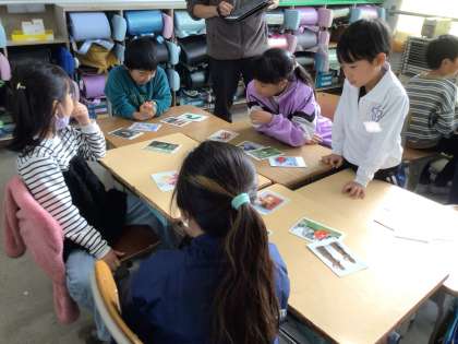 アートカードを使って、いろいろな絵や写真を見て感じたことを、「探偵」になって楽しく伝え合いました。