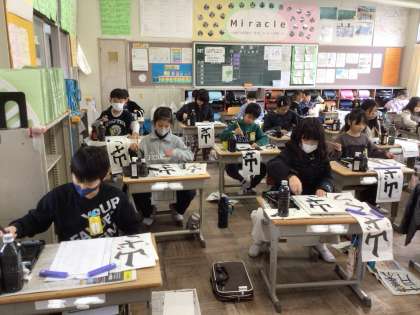 1月7日 書き初め大会2 公開日 2025/01/07 更新日 2025/01/07 校長室から それぞれが力一杯取り組み、素晴らしい書き初め作品が完成しました。 書き初め大会で書いた作品は、15日から17日の間に、学校の体育館に展示します。ぜひご覧ください。