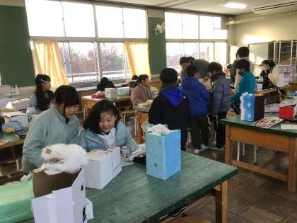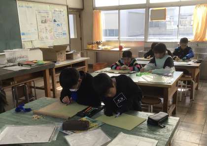 教室だけでなく、家庭科室や図工室で作品制作に熱心に取り組む姿も見られます。