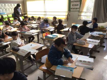 1月14日 学習の様子(1年生) 公開日 2025/01/14 更新日 2025/01/14 校長室から 1年生は、国語科で昔話について学習しています。 今日は「おはなしをかこう」で、登場人物を決めて、自分でお話を考えていました。