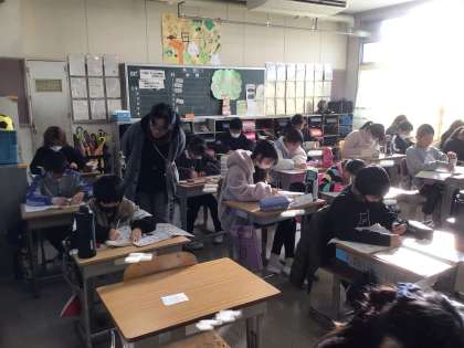 1月16日 外国語科(5年生) 公開日 2025/01/16 更新日 2025/01/16 校長室から 5年生が「At a restaurant」の学習で、英語でのレストランの注文を聞き取り、絵とつなぎ合わせていました。ALTの先生が一緒に確認をしてくれていました。
