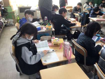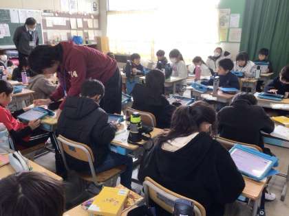 1月20日 国語科(4年生) 公開日 2025/01/20 更新日 2025/01/20 校長室から 4年生が、国語科で「数え方」について学習していました。 国語辞典も活用しながら、家の数え方「邸」や、イカの数え方「杯」など、様々な数え方を調べてワークシートに熱心に書き込んでいました。