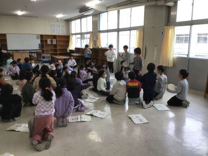 1月27日 音楽科(1年生) 公開日 2025/01/27 更新日 2025/01/27 校長室から 1年生が、2クラス合同で音楽の合奏練習に取り組んでいました。 「とんくるりんぱんくるりん」と、軽快な歌詞に合わせて打楽器で上手にリズム打ちをしていました。