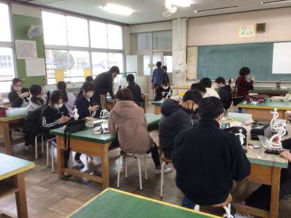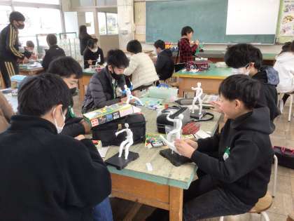 1月28日 図画工作科(6年生) 公開日 2025/01/28 更新日 2025/01/28 校長室から 6年生が、図工「未来のわたし」の制作に取り組んでいます。 体の動きを様々な角度から確認したり、グループの子と考えたりしながら、丁寧に制作を進めていました。