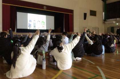 1月29日 防犯教室(3年生) 公開日 2025/01/29 更新日 2025/01/29 校長室から 3年生が、昨日、市の交通安全防犯課の方を講師にお招きして、防犯教室を行いました。 子どもたちの身近な地域の公園を映像資料として見せていただきながら、不審者は姿格好では判断できないことを教えていただきました。 また、大声の出し方や不審者に捕まった時に逃げるための技を練習したり、防犯ブザーの使い方を学んだりしました。