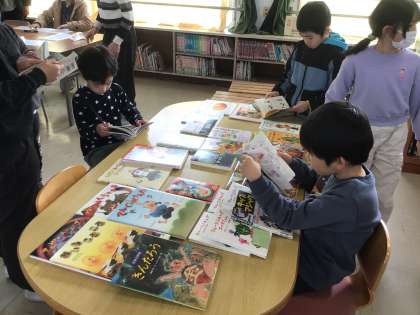 子どもたちはすぐに気づき、さっそく熱心に読んでいました。