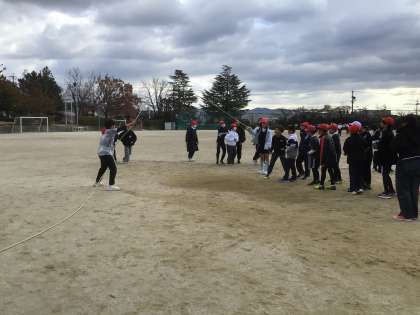 後半の長縄跳びでは、皆で声をかけ合いながら記録に挑戦していました。