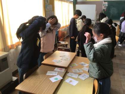 3年生が、明日の学習発表会に向けて、リハーサルに取り組んでいました。
