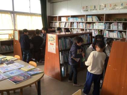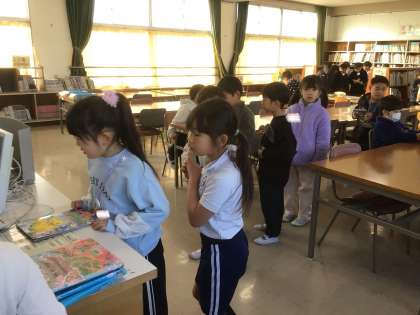 今朝は、朝の学習の時間に1年生が本を借りていました。楽しそうに本を選んでいました。