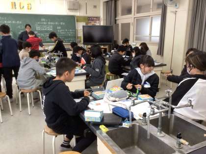 今日は、電磁石の強さについて、コイルの巻数を変えて比べる実験をしていました。