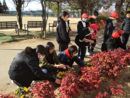 2月20日 五つのいっぱい「花いっぱい」卒業記念 公開日 2025/02/20 更新日 2025/02/20 学校の特色ある活動 6年生が「花いっぱい」の活動でおたふく南天を植えています。 赤色が美しく、花壇が明るくなります。