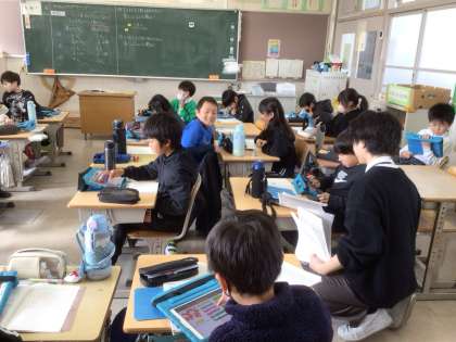 2月20日 算数科(4年生) 公開日 2025/02/20 更新日 2025/02/20 校長室から 4年生が、算数科でICT支援員の先生に、プログラミングを教えていただきました。 うまく設定ができて忍者がどんどん増えていくと、子どもたちから歓声が上がっていました。