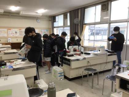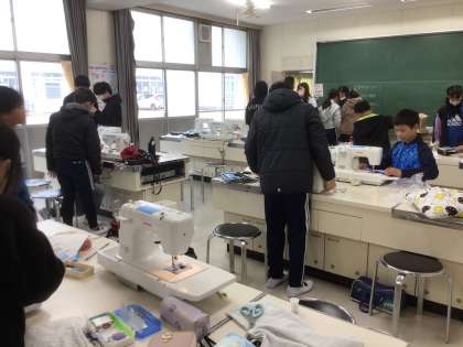 6年生が、家庭科の学習で家族へのプレゼントを制作しています。
