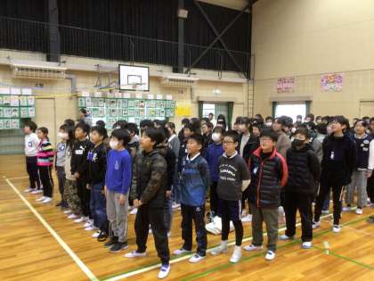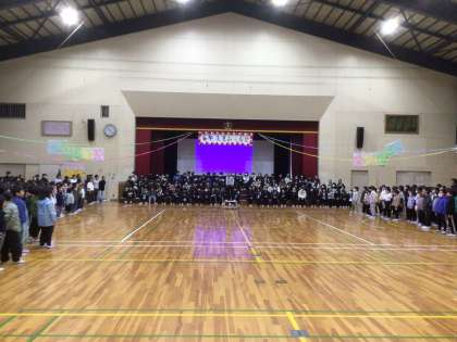 3月5日 6年生を送る会3 公開日 2025/03/05 更新日 2025/03/05 校長室から 6年生から5年生への学校旗の引き継ぎでは、6年生旗を手渡され激励を受けた5年生が「全員で6年生の思いを引き継ぎ、みんなが笑顔で過ごせる青木小学校にします」と決意を発表しました。 最後に「また会う日まで」を在校生全員で合唱しました。「歌いっぱい」の青木小の子どもたちのすばらしい歌声が体育館中に響き渡りました。