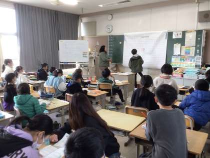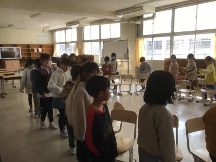今のクラスで過ごすのもあと少しです。お楽しみ会を計画していた学級もあり、外で遊んだり、教室でゲームをしたりして楽しんでいました。
