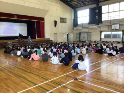 学年集会を行った学年もありました。 先生の自己紹介や学年目標など、真剣に話を聴いていました。