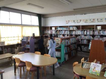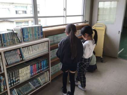 今日から、学校の図書館を開館しました。 さっそく3年生の子どもたちが借りていました。
