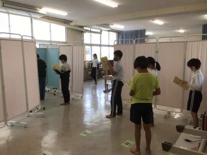 今日から順次身体測定、視力検査を行っていきます。 今日は高学年が学級ごとに測定を行いました。