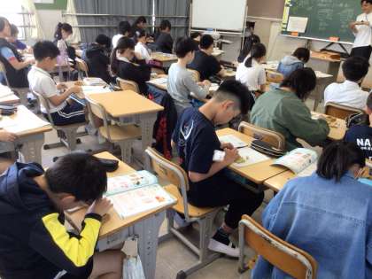 4月21日 算数科(5年生) 公開日 2025/04/21 更新日 2025/04/21 校長室から 5年生が算数の学習で「体積」に取り組んでいます。 1㎤の積み木を使って、真剣に容積を確かめていました。