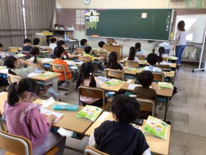 1年生が、ひらがなの練習を始めました。 鉛筆をしっかり持ち、丁寧に書こうとしていました。