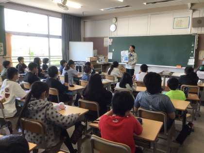 4月24日 交通安全のお話 公開日 2025/04/24 更新日 2025/04/24 校長室から 花本町にある「トヨタテクニカルディベロップメント株式会社」の新入社員の方々が学校に来てくださり、自作のポスターを使って、子どもたちに交通安全のお話をしてくださいました。 地域の会社の方々にも子どもたちの交通安全を考えていただき、とてもありがたいです。