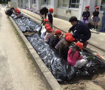 5月15日 五つのいっぱい「花いっぱい」 公開日 2025/05/15 更新日 2025/05/15 学校の特色ある活動 5月になり、それぞれの学年で植物を育てる活動を始めています。 1年生は、サツマイモの苗を学級ごとに花壇に植えました。 2年生は、野菜の苗を植木鉢に植えました。