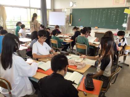 国語では、グループで音読の発表をしていました。人物の気持ちを考えながら読めていました。