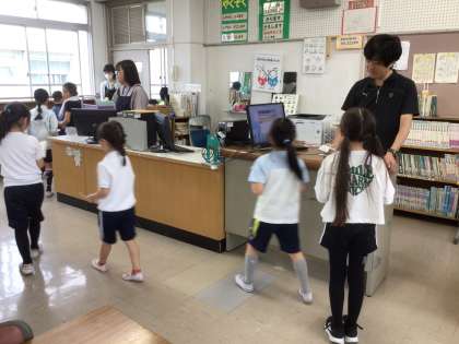 5月23日 朝の会では 公開日 2025/05/23 更新日 2025/05/23 校長室から 朝の会の時間に、1年生、3年生が図書館で本の貸借をしていました。 金曜日は図書館司書さんの在校日なので、子どもたちが司書さんに「今、私は何冊借りていますか?」「こびとの本はありますか」など、いろいろ質問をしながら本を借りていました。