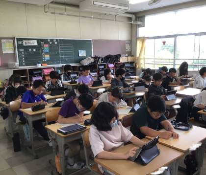 5年生が、国語の「知りたいことを聞き出そう」の学習で、学年の先生にインタビューをしています。今朝は、担任以外の先生にインタビューをして、聞き出したことを学習用タブレットやワークシートに熱心にまとめていました。