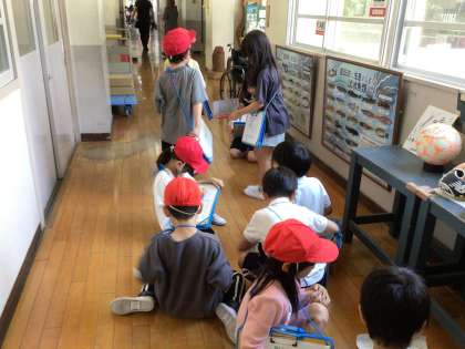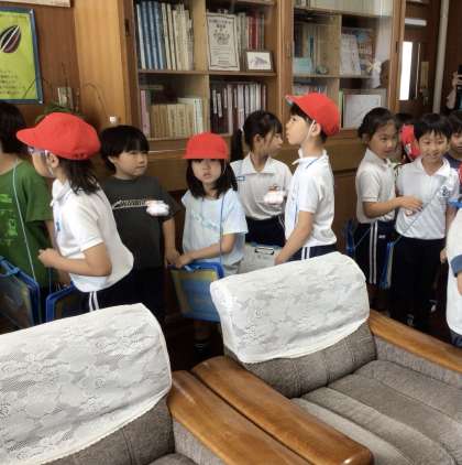 5月28日 学校探検2(1、2年生) 公開日 2025/05/28 更新日 2025/05/28 校長室から 1年生の子どもたちは体育館を出発し、理科室や図書館、3階の教室などを2年生の案内でまわりました。 2年生の子どもたちが校長室にも来てくれて、「校長室は、校長先生がお仕事をする部屋です。お客さんも来ます。校長室には昔の校長先生の写真がたくさんあります……」等、上手に説明をしてくれました。