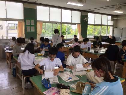 6月2日 学習の様子(6年生) 公開日 2025/06/02 更新日 2025/06/02 校長室から 図画工作科では、クランクを動かして構造を確認しながら、自分が作りたい作品を考えていました。 家庭科では、いろどり野菜炒めを作っていました。ニンジン、ピーマン、タマネギを手際よく切っていました。 外国語では、ニューヨークの天気について説明している英語を聞き取ってノートに書いていました。