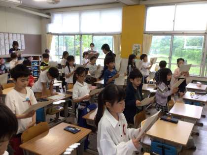 子どもたちは、先生の問いかけに張り切って答えていました。