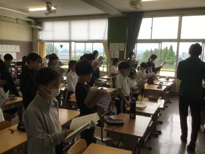 5年生が、朝の会でキャンプの歌を歌っていました。毎日、グループや学級、学年で力を合わせて準備を行っています。