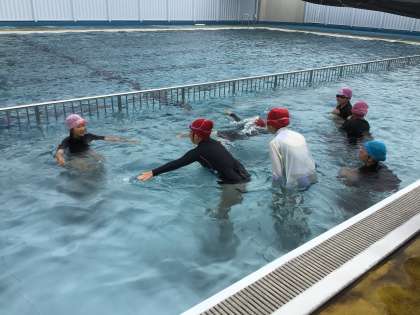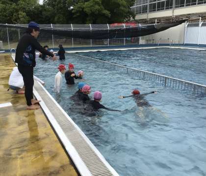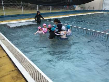 6、7、8、9組の子どもたちがプール開きを行い、楽しく水慣れをしました。