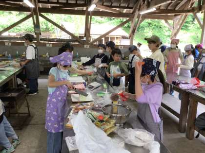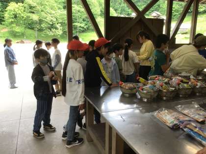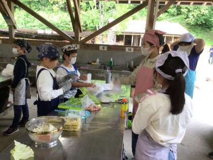 オリエンテーリングの後は食事の用意です。 焼きそばを作ります。 まずは食材の準備をしました。