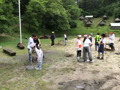 6月12日 野外学習6 公開日 2025/06/12 更新日 2025/06/13 学校行事 焼き台の準備ができたところで、火起こしです。 キャンプでは、火を起こすところから始めます。所員さんの説明を聞き、火起こしの仕方を学びました。
