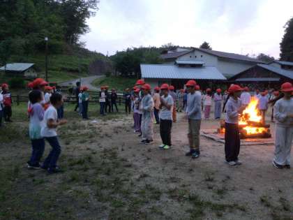 キャンプファイヤーでは、実行委員の司会で、各学級が楽しい出し物を行いました。
