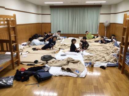 宿泊棟に帰って来ました。 お風呂に入ったり、夜食のおにぎりを食べたりしてゆっくり過ごしました。