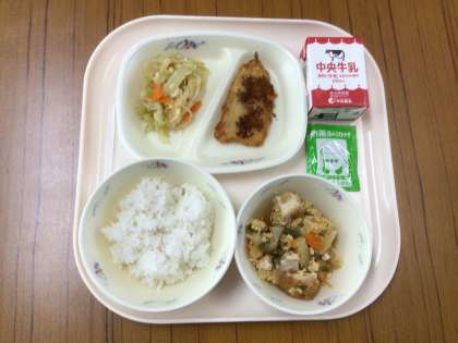 6月17日 愛知を食べる学校給食の日 公開日 2025/06/17 更新日 2025/06/17 校長室から 豊田市産や愛知県産の食べ物を多く使用する「愛知を食べる学校給食の日」として、今日は「ごはん、牛乳、生揚げの卵とじ、にぎすフライ、おひたし、抹茶のふりかけ」の献立でした。 豊田市産の食材が5つ、愛知県産の食材が5つ入っていました。
