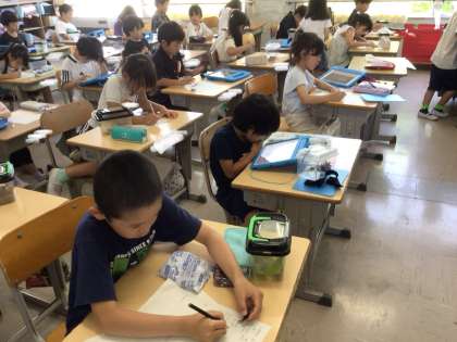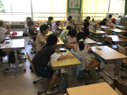 6月18日 生活科(2年生) 公開日 2025/06/18 更新日 2025/06/18 校長室から 2年生は、生活科の学習で生き物について調べています。 今日は、校庭の虫をつかまえて観察したり、学習用タブレットで教科書のQRコードを読み取って、虫の生態を動画で見たりして学んでいました。