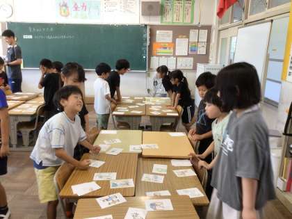 今日は、昨年度の3年生が作成したカルタを楽しみながら、青木の魅力について知りたいことを考えました。